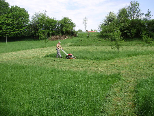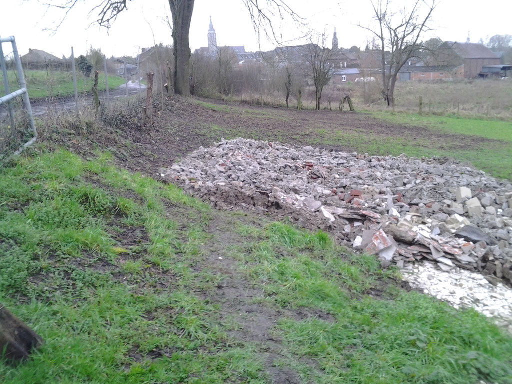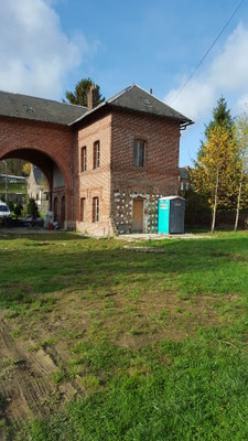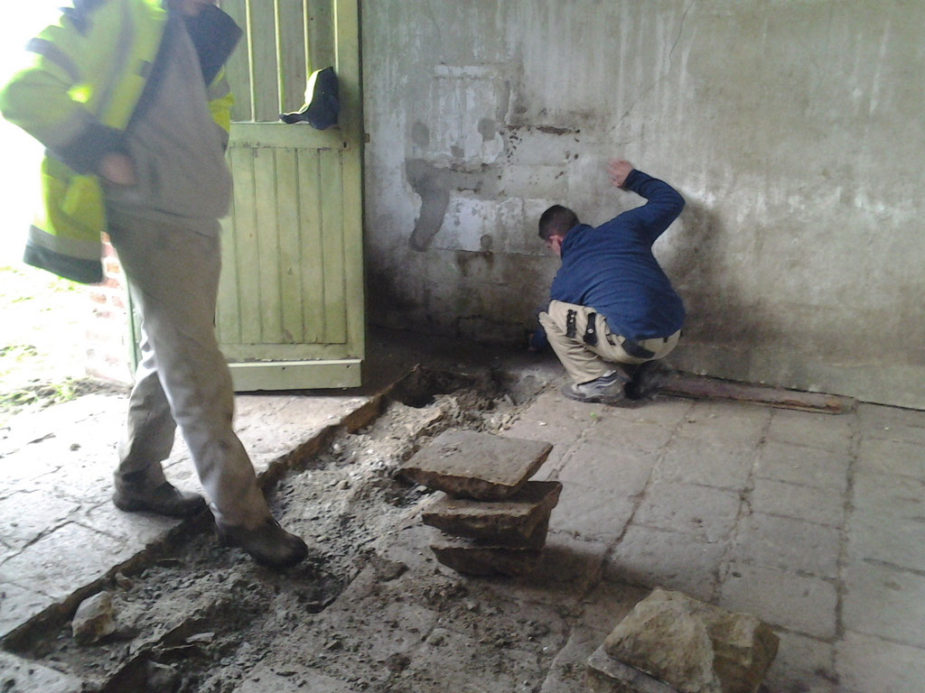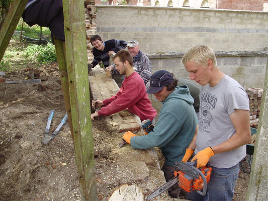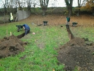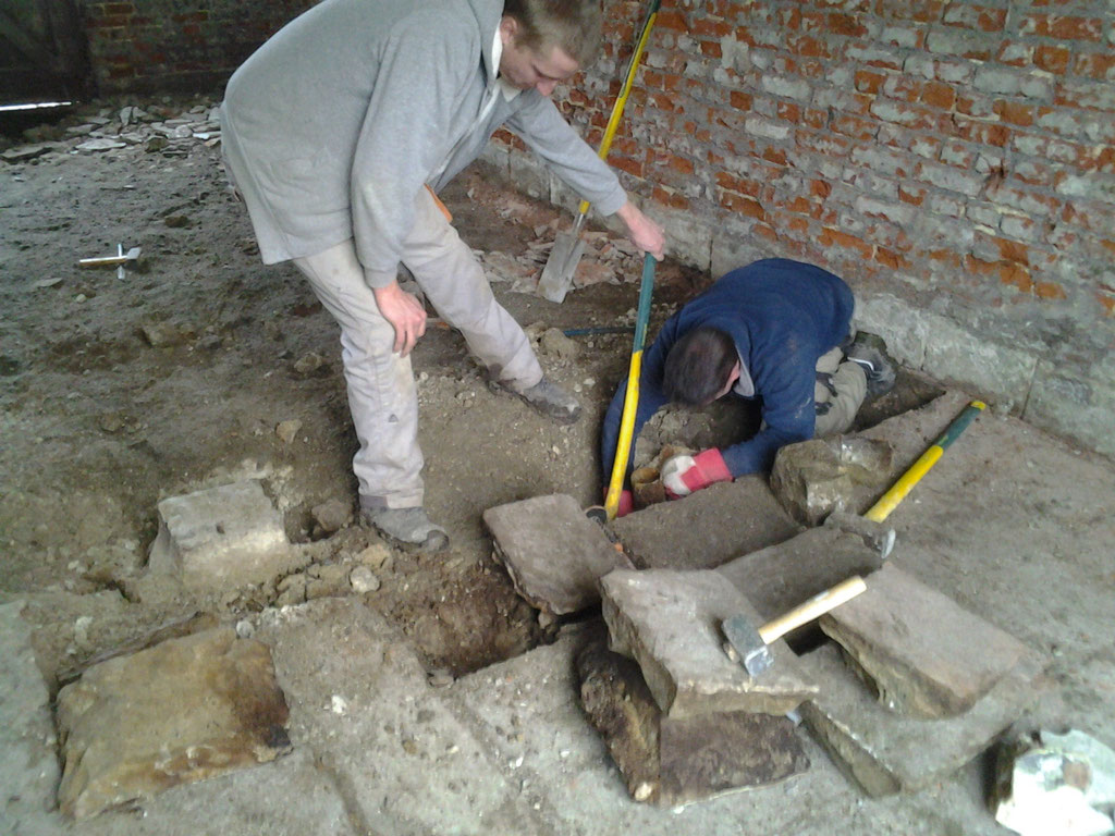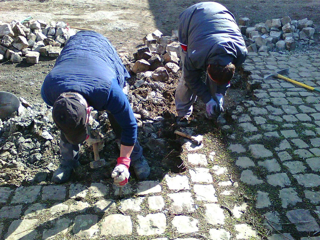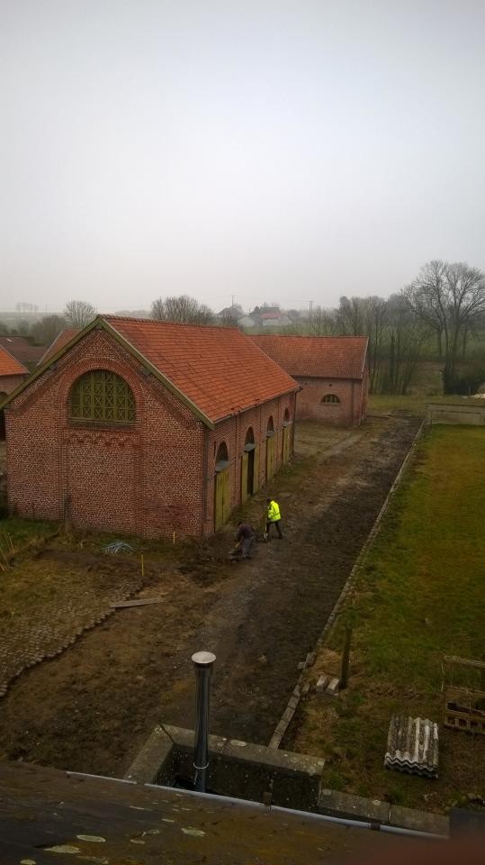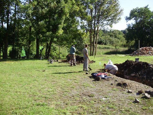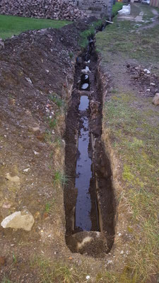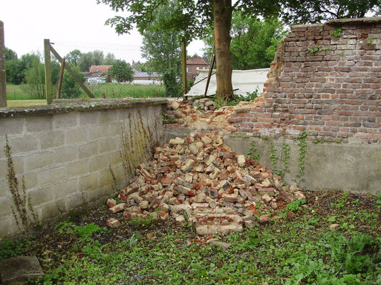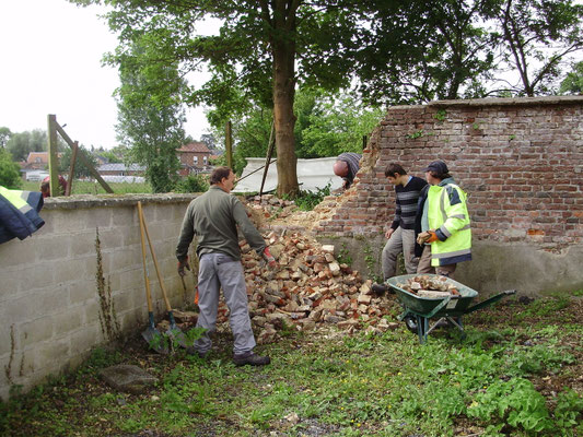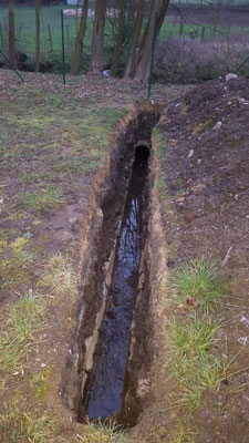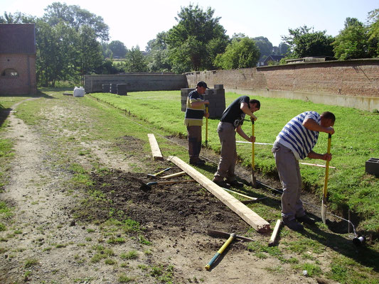 bouchée et de la remplacer afin de faciliter l'écoulement des eaux de pluie et assainir les bases du futur mur en projet de construction. Parallèlement le dépavage et l'entretien du site se