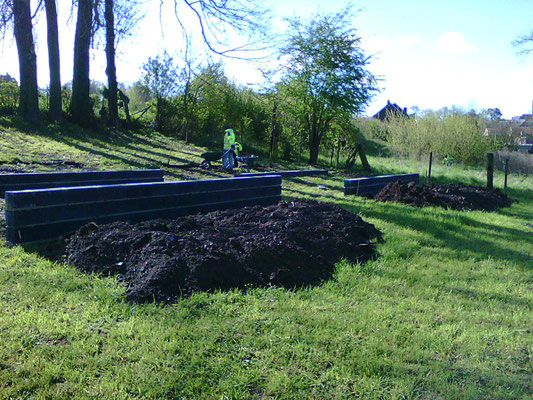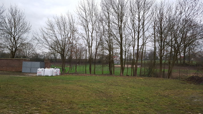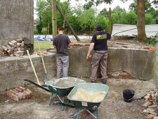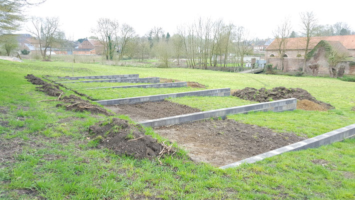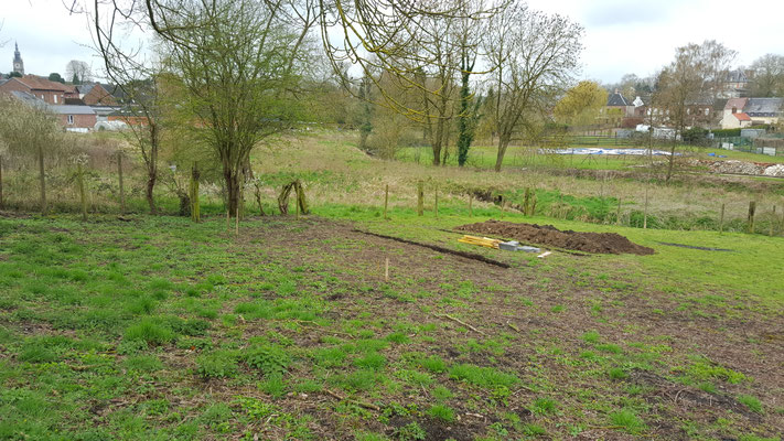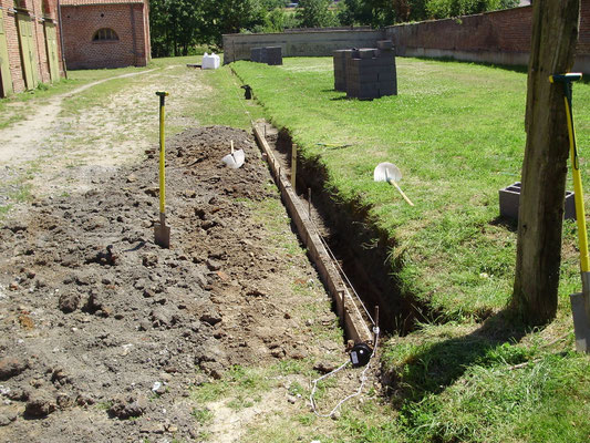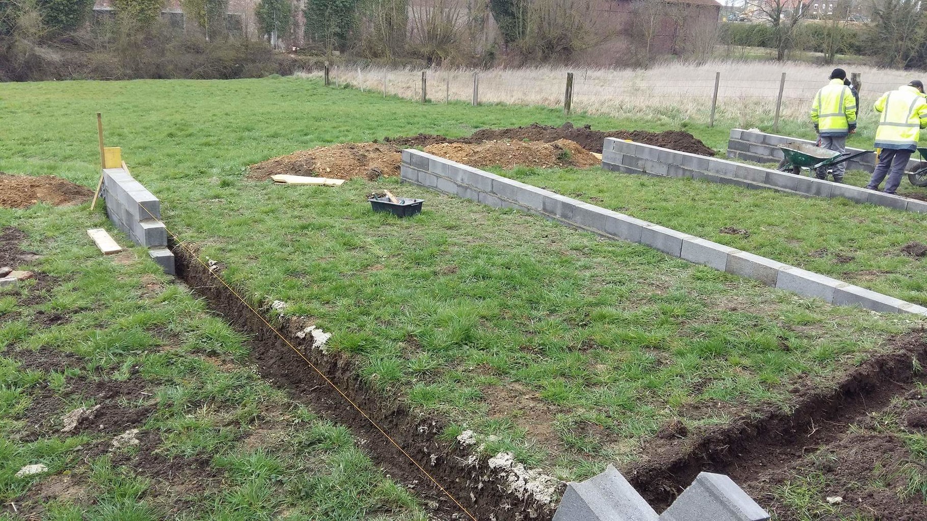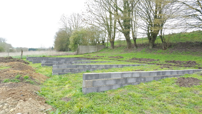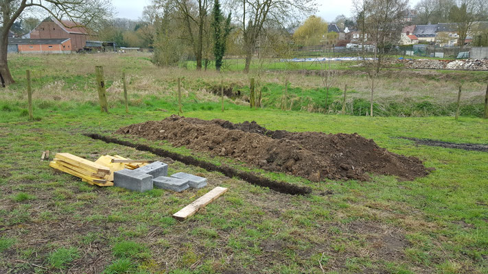 Le muret de séparation avec les voisins est quasi terminé, on commence les fondations pour la