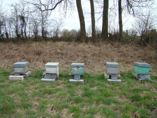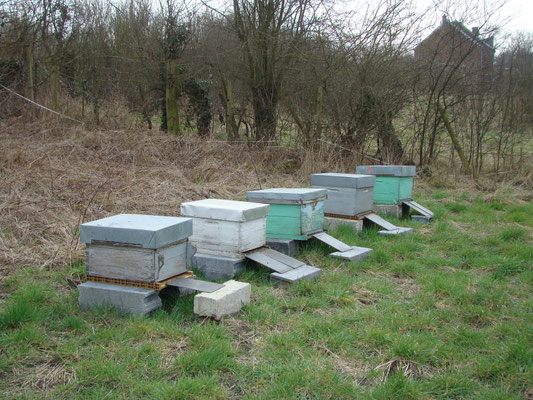 Février 2015 : 5 ruches ont été placées dans une des pâtures :