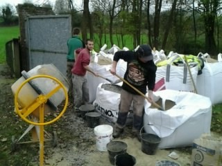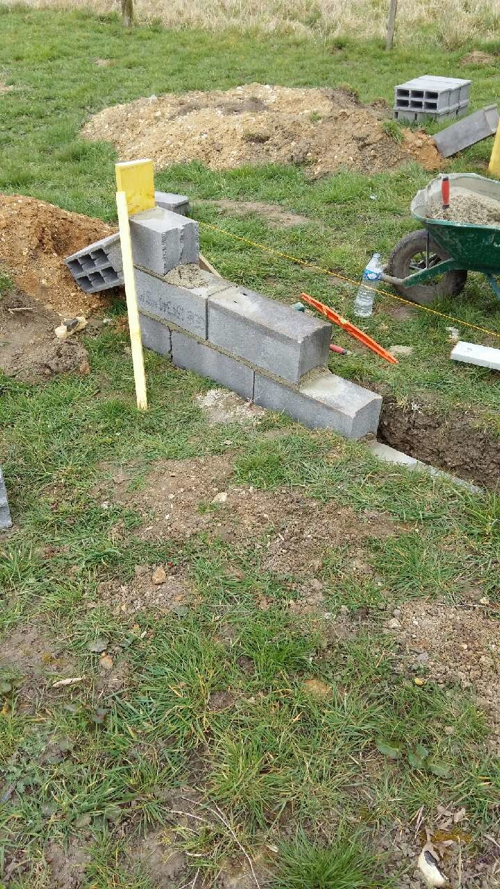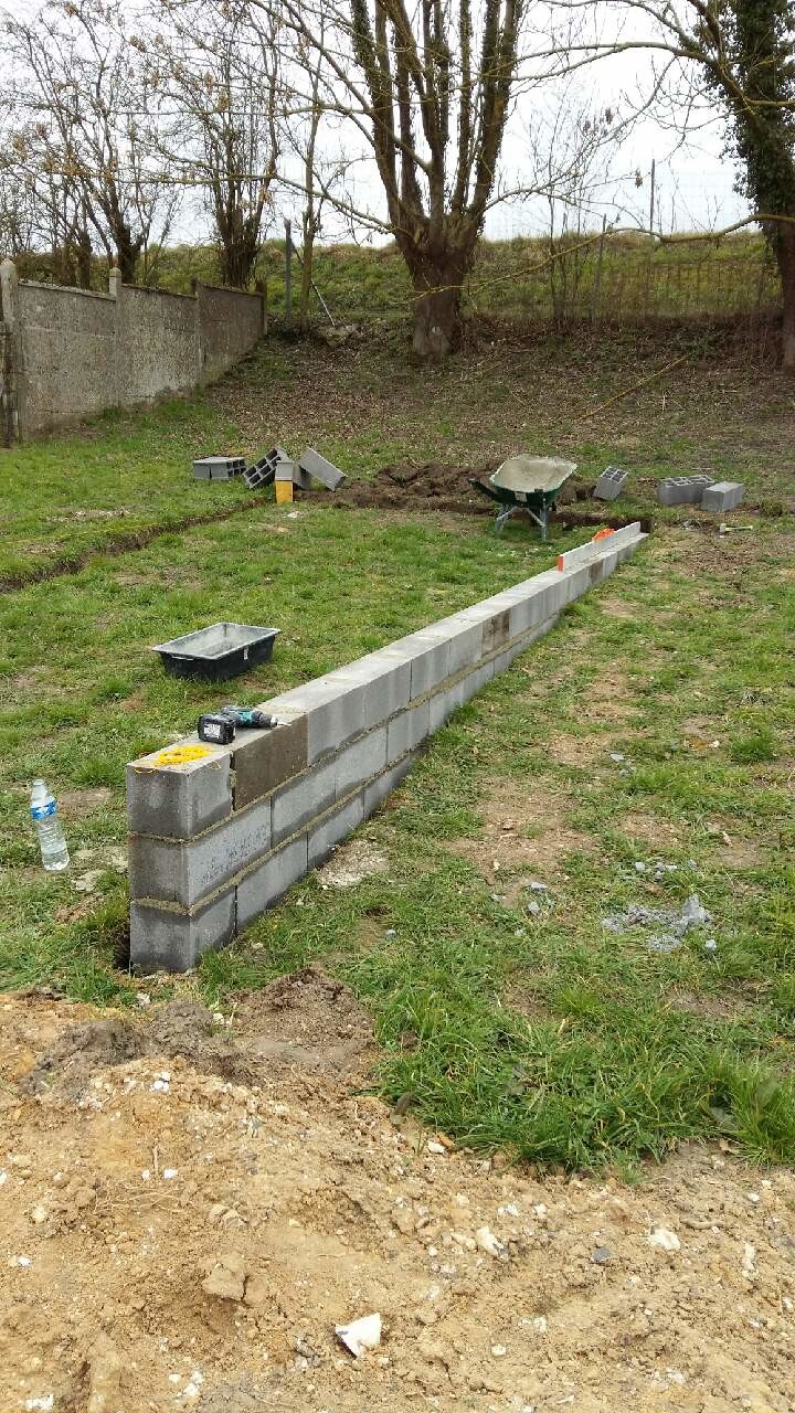 construction d'un mur en parpaings.